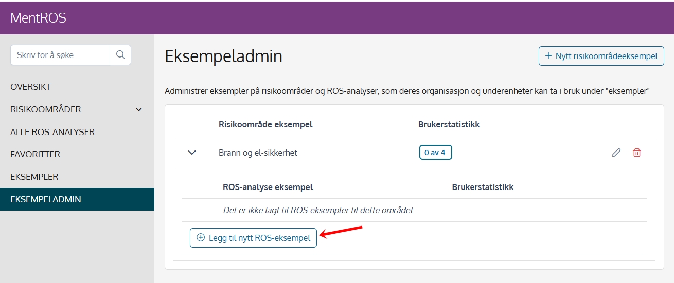 Når et risikoområde er opprettet, kan konsernet legge inn konkrete ROS-eksempler. Disse kan undervirksomhetene ta i bruk direkte i sine egne ROS-analyser og tilpasse til egne forhold og vurdere risiskograd.